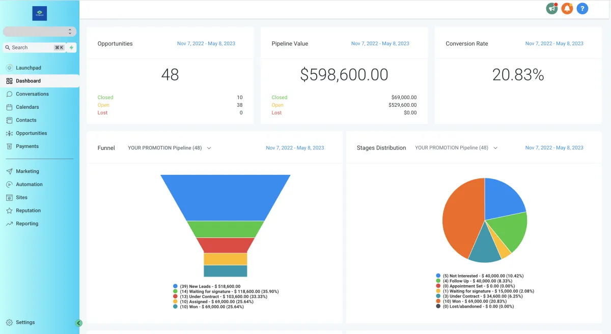 Tracking your business has never been easier. Track how many leads you are generating and converting along with the KPIs of your team all in one place.